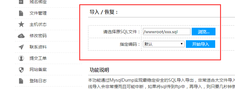 3 虚拟主机导入SQL文件(DATA目录下面 sql文件)