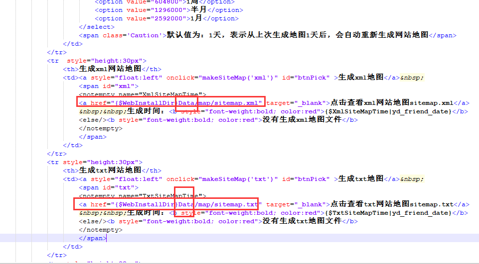 对应的网站优化中的目录地址也可以修改下地址:AppTplAdminDefaultSeo sitemap.html 这个里面的路径,可以改下测试