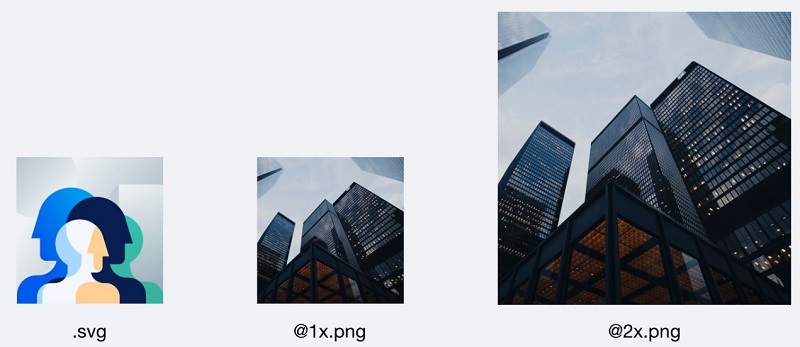 关于切图,切图之前应跟开发确定好输出的格式和尺寸,确定应该用 SVG,一倍图或是两倍图。SVG 体量小渲染质量好,单色使用时还能替换颜色,PNG 则通常用在实景图,一倍图和二倍图则根据实际需要进行输出。