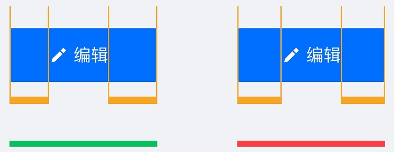 「按钮」也是 UI 设计中常用的组件,当我们在按钮里使用图标加文字时,由于文字的体量更大,整体重心会往右偏,所以我们通常会认为让图标和文字整体往左偏移,使整体的视觉更加平衡,实际给到开发的,也是两个不同等的边距。