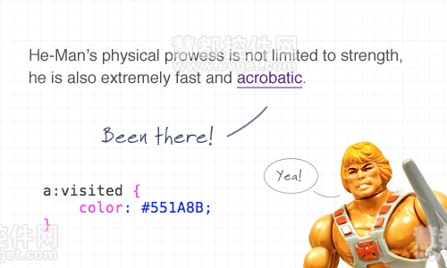 处理已经访问过的链接不需要高超的CSS技术,但它经常被忽略。应该给用户一个视觉上的提示,告诉他/她网页中的哪些链接是已访问过的。