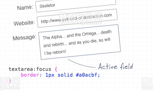 尤其在使用输入框或输入域时,选择使用“focus”或其它方式,展示出哪一个区域在当前是处于激活状态的,这一点对用户很有帮助。这里可以是一种CSS样式,比如高亮的边框或背景色有些不同。