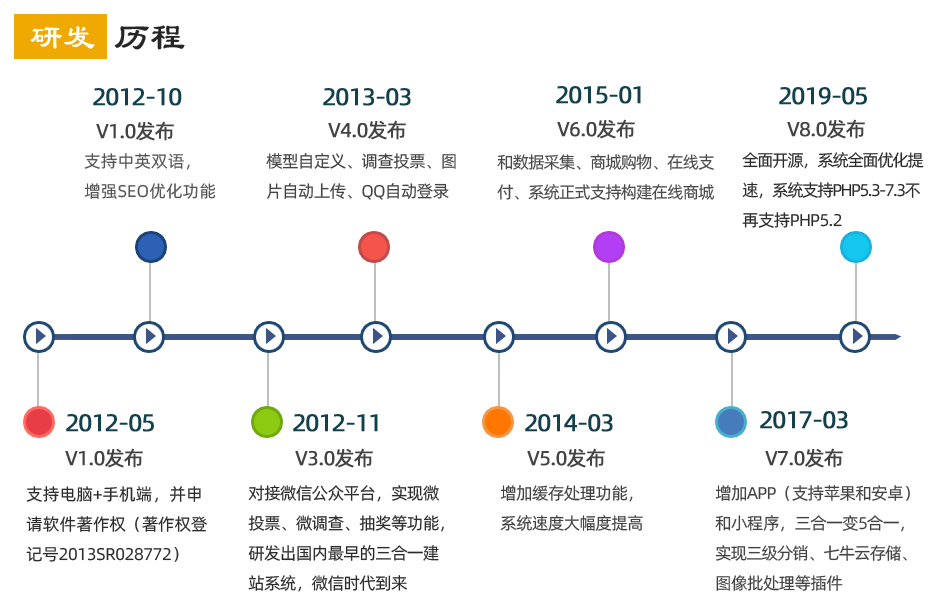 CMS系统)的成长,我们一直秉承“用技术做好产品、用服务创造价值”,用心打造一款您值得信赖的互联网建站品牌。为了让我们用户和开发者们能够更加方便、自由的进行个性化修改和开发,因此公司决定将产品正式完全开源。