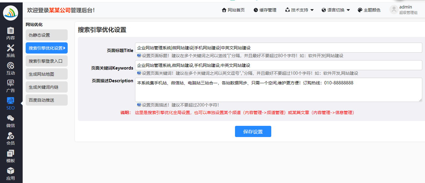 网站优化页面截图: