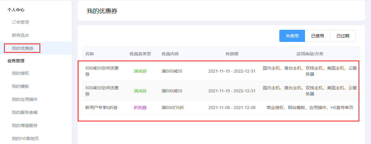 3、满减券、折扣券、现金券,丰富的优惠券,多买多送!