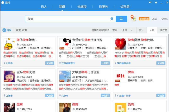 首先你得有加入一些QQ群才能开始操作,没有的话就多找几个加入吧,最好是群的人数越多越好,放心,加群没那么累人,多加一些2000人的大群,只要你加上5、6个就有1万个邮箱。